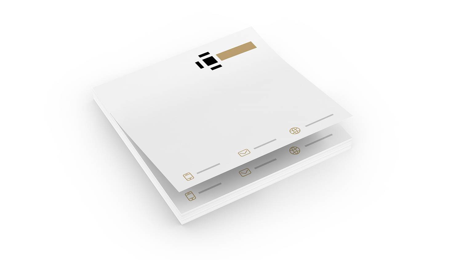 De eenvoudigste variant van onze memoblokjes is in 3 formaten beschikbaar. De afzonderlijke velletjes zijn naar keuze boven of links gelijmd. Het lijmspoor bevindt zich onafhankelijk van het formaat altijd aan de langere zijde.