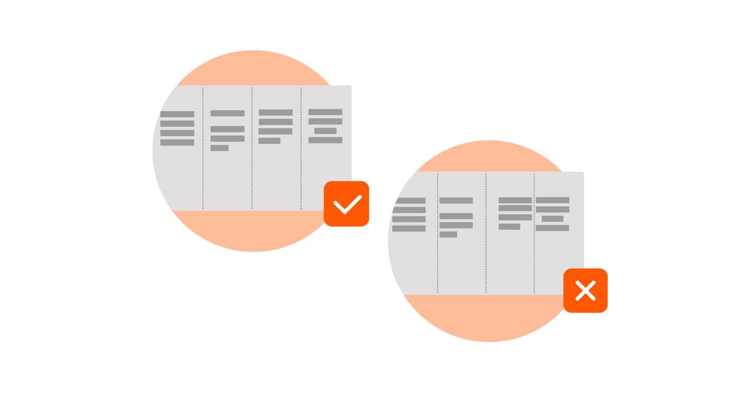 Onderdelen van vormgeving of lay-out zijn niet centraal uitgelijnd tussen de vouwen.
