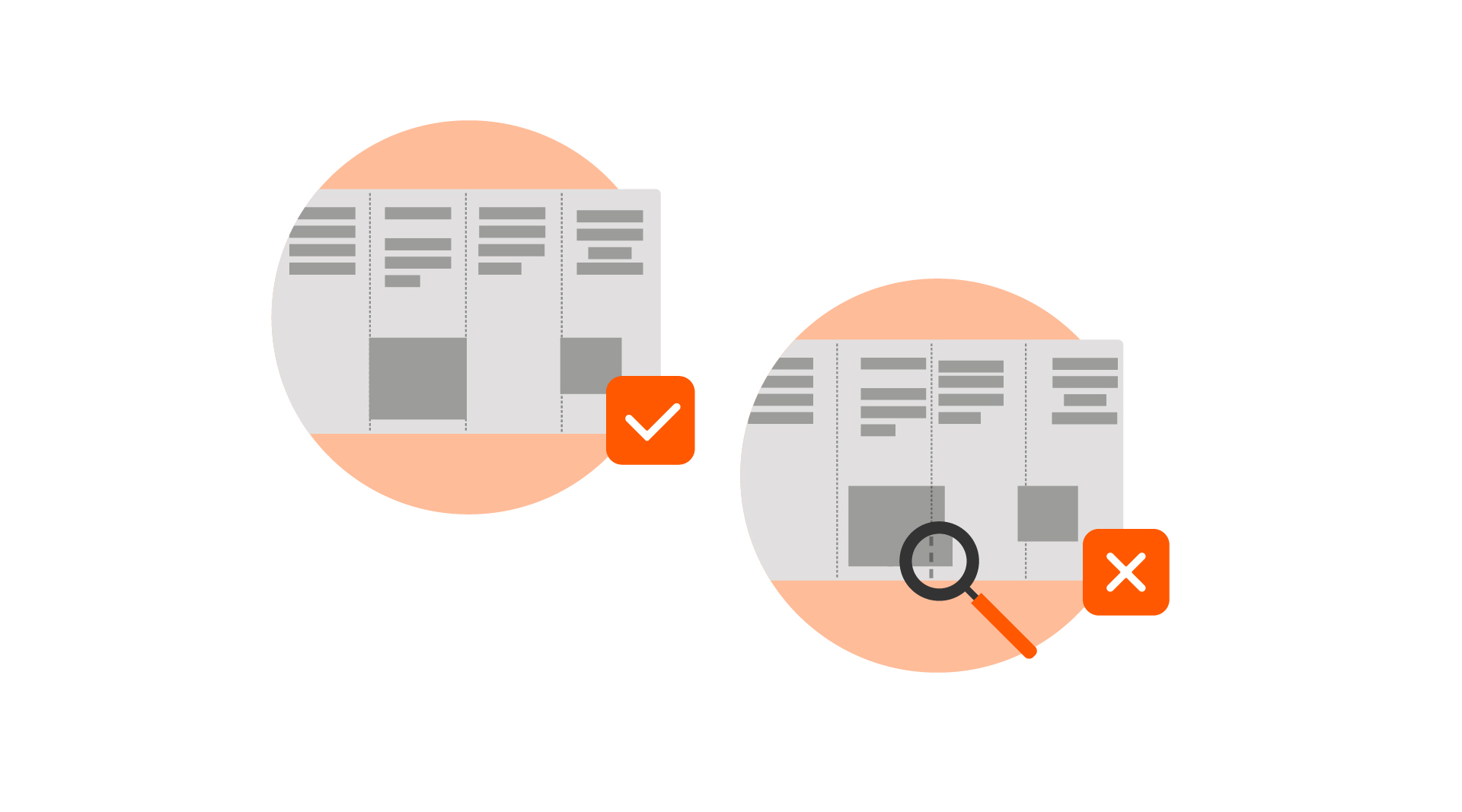 Mocht een correcte positionering van vouw en lay-out niet lukken met de sjablonen, kunt u ons dit laten weten.